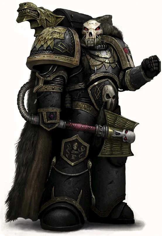 Should one amongst their number prove himself truly exceptional during the day's fighting he may find himself visited by a vision out of a nightmare. After the conclusion of the battle, when the blood-soaked battlefield is littered with corpses, a looming, armoured figure, black as Morkai's fur and wearing a leering wolf skull helm, may emerge silently from the shadows. The figure beckons the chosen Fenrisian warrior to come with him, to walk away from the love and warmth of their family forever. It is said that no single tribesman has ever refused, for legends foretell that the Wolf Priests not only possess the ability to imbue true greatness but also hold the keys to the stars themselves. Even those chosen warriors who have suffered grievous wounds which would ordinarily prove mortal can be healed by the skills of the Wolf Priests if they have the will to live.